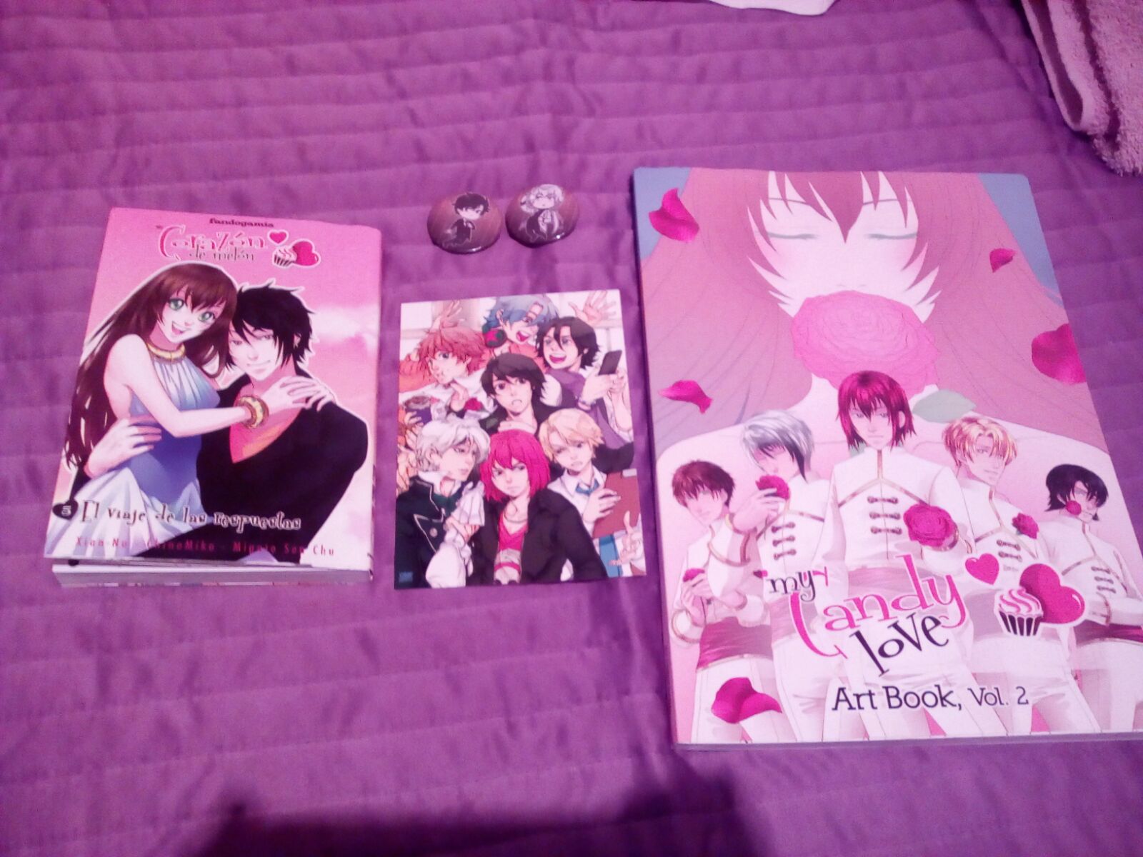 En el stand de Fandogamia le compramos a Julia el último tomo del manga de "Corazón de Melón" que viene con un póster y una postal ilustrados por Xian Nu Studio.